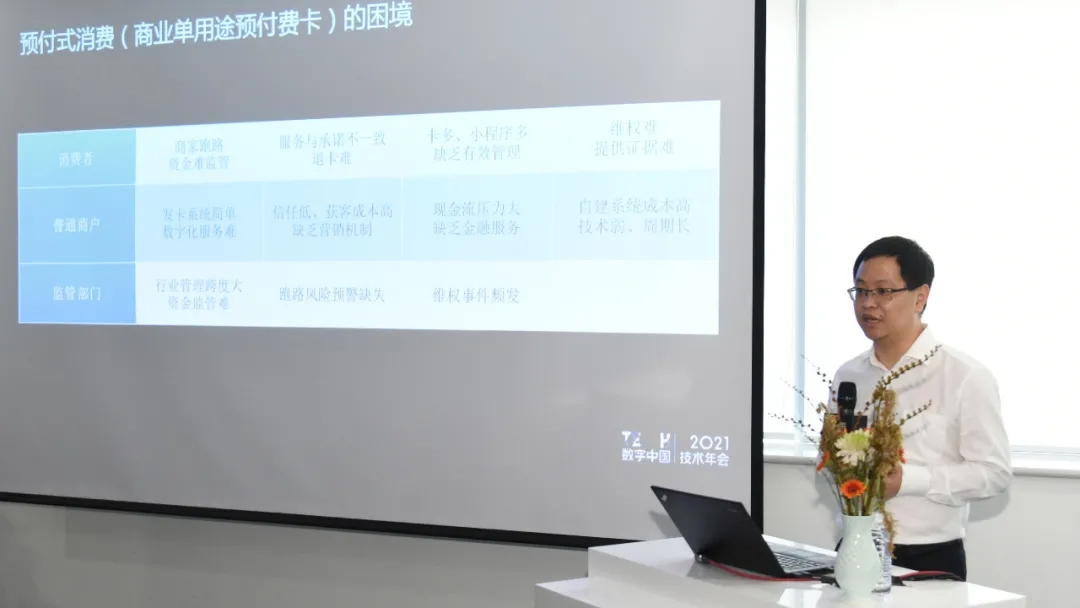 9月29日,由神州控股、神州信息、leyu.乐鱼集团联合主办的“TECH数字中国 2021技术年会”之“场景创新·赋能高质量发展”的主题论坛在京召开,现场,神州信息重磅发布了基于区块链技术和数字人民币应用的预付式消费服务平台,以更好地满足消费者多元化场景消费需求,促进预付式消费新生态的健康发展,打造数字化智慧生活。
